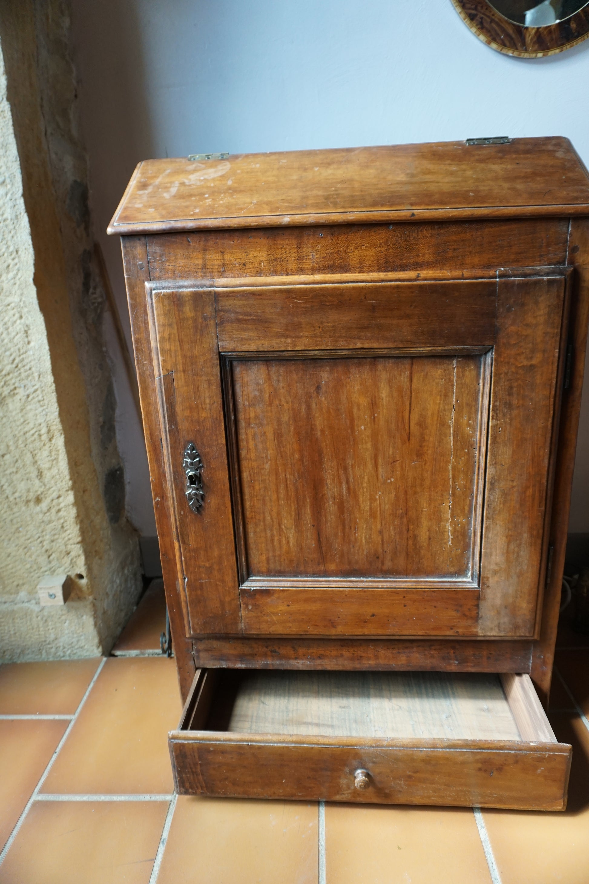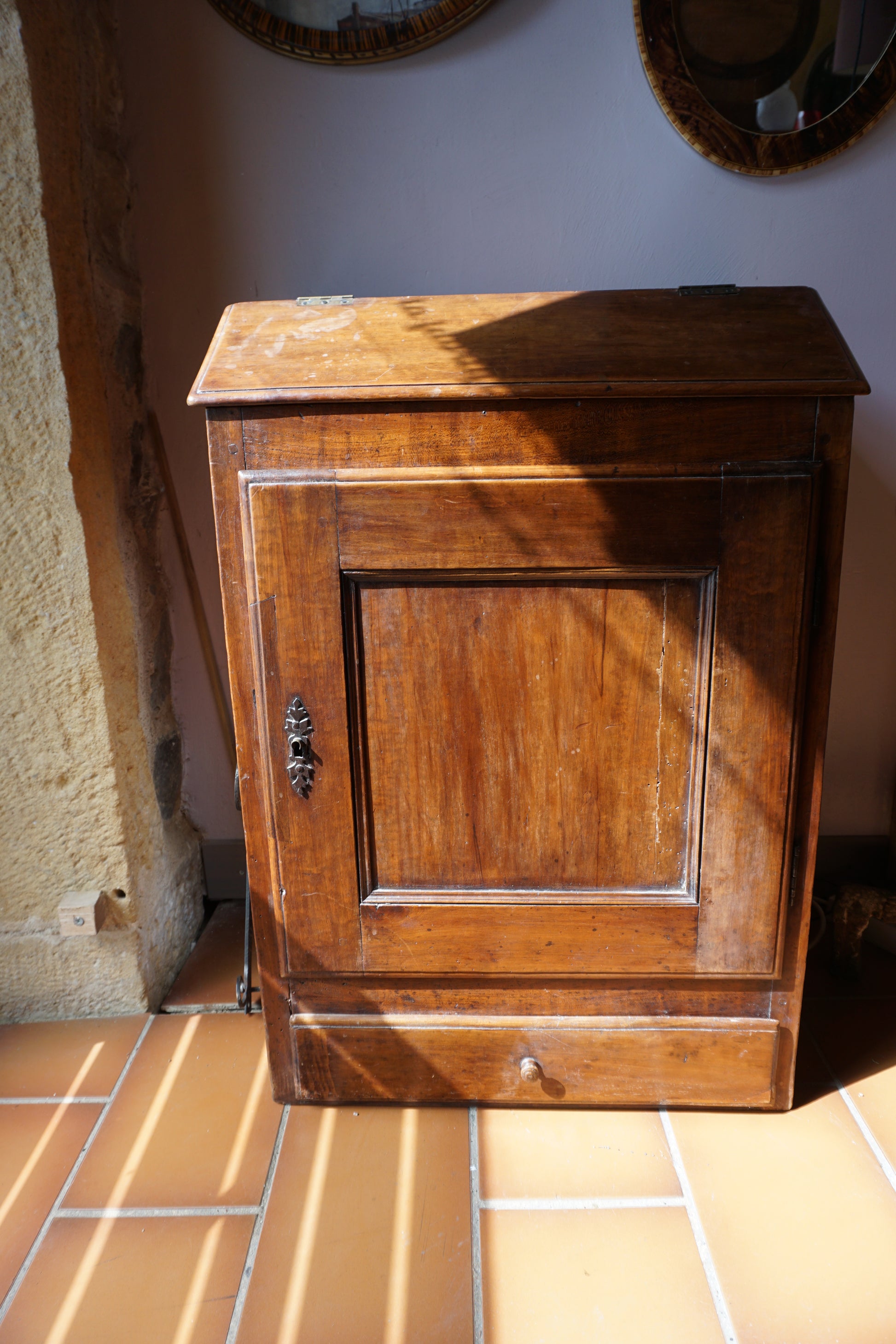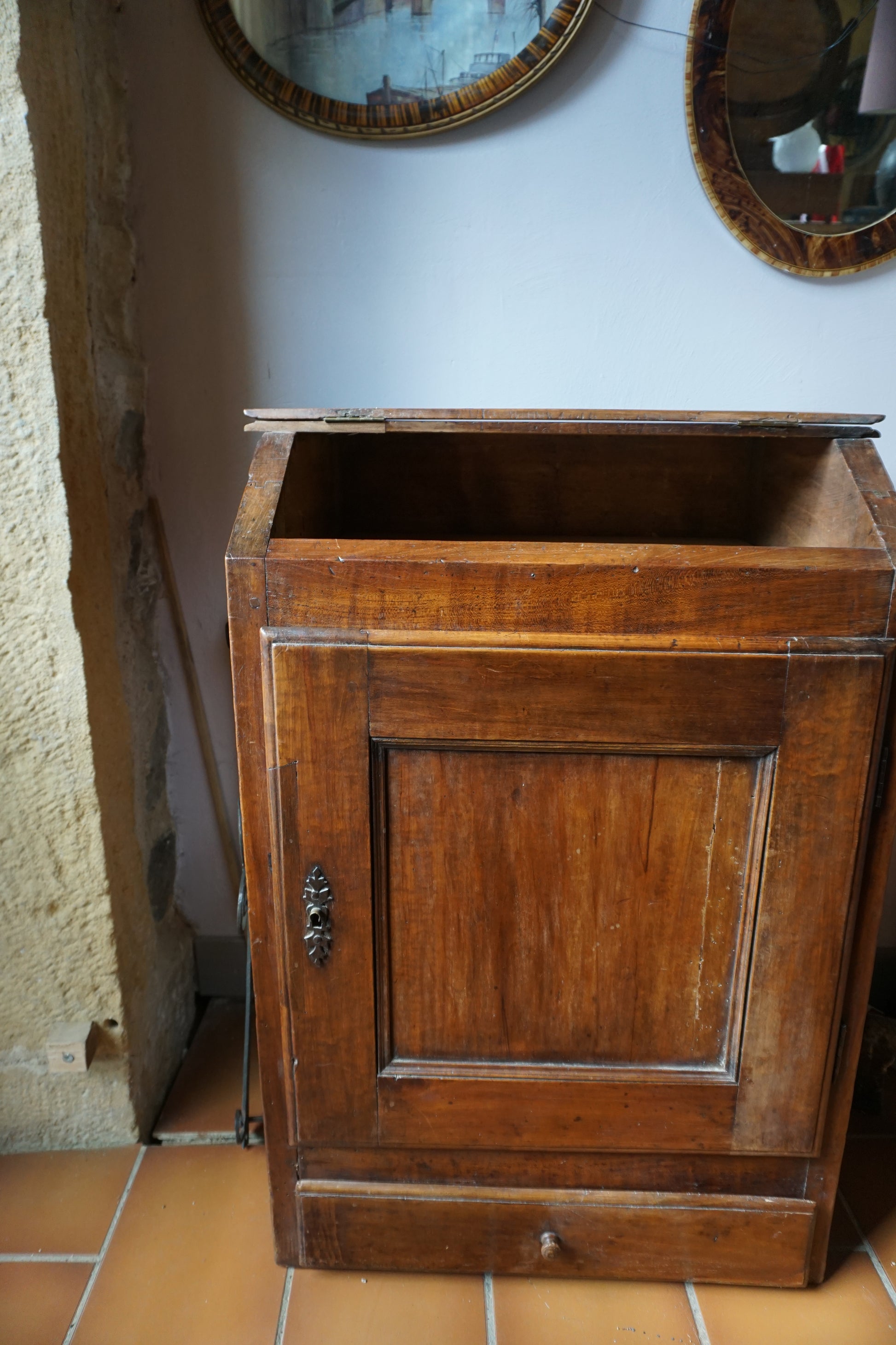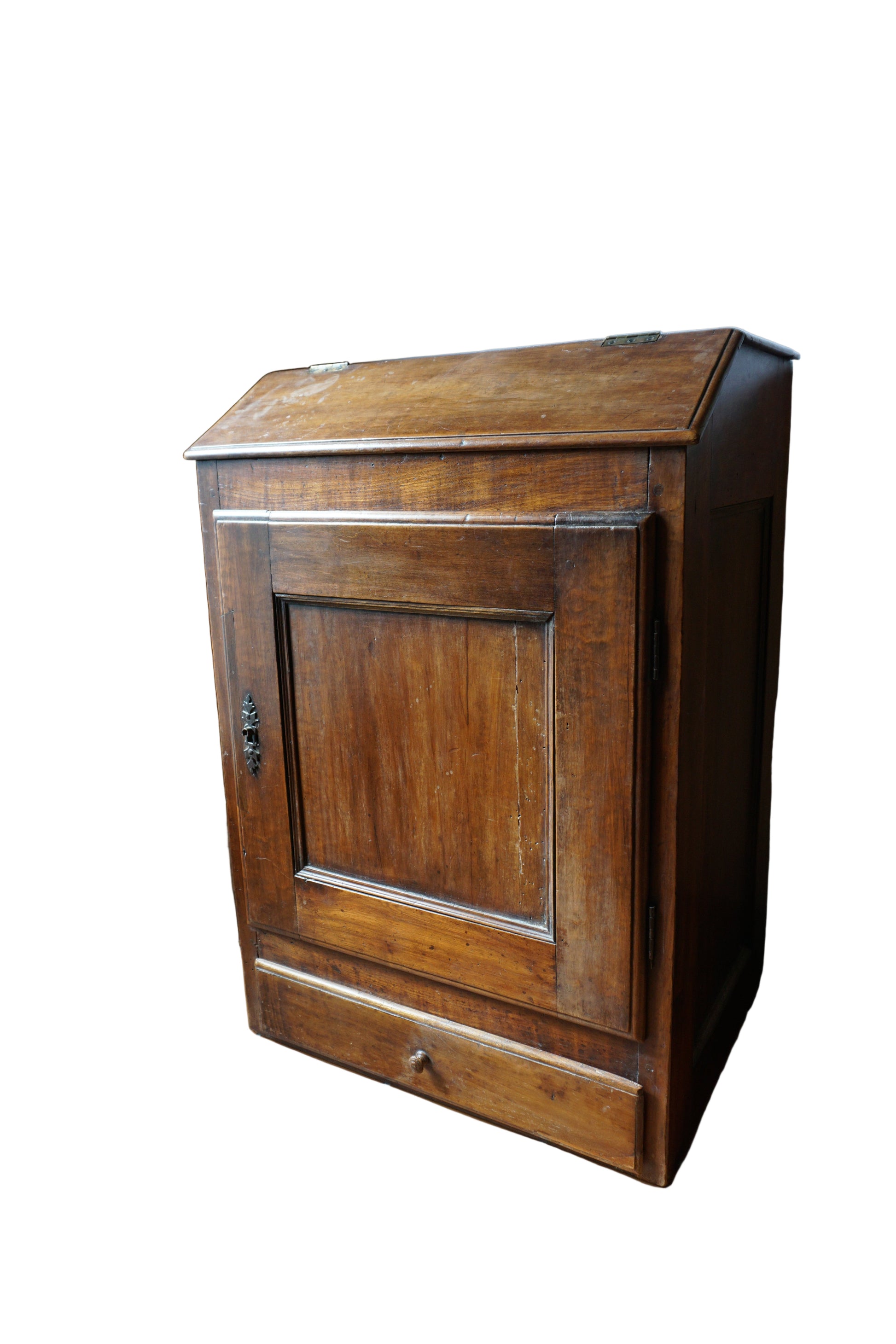 Buffet de sacristie en noyer de la région lyonnaise avec un abattant, une porte et un tiroir de la fin du XVIII° siècle.