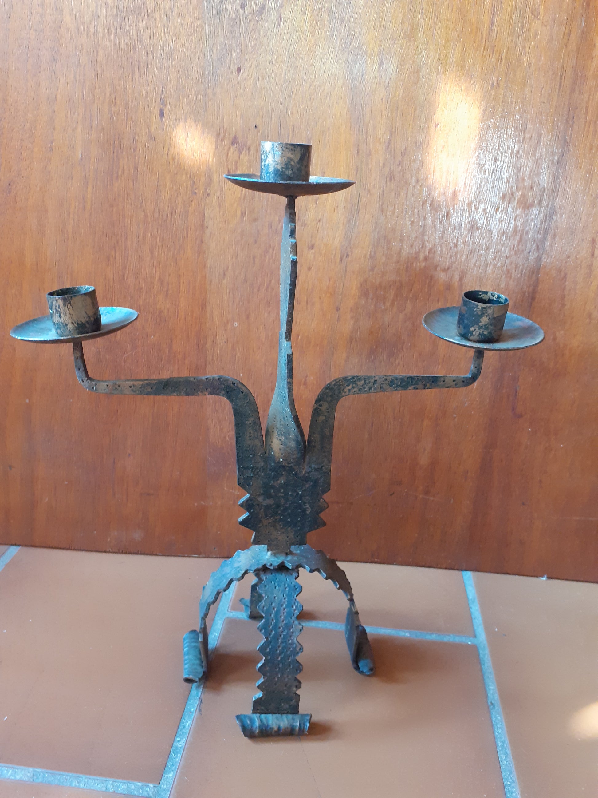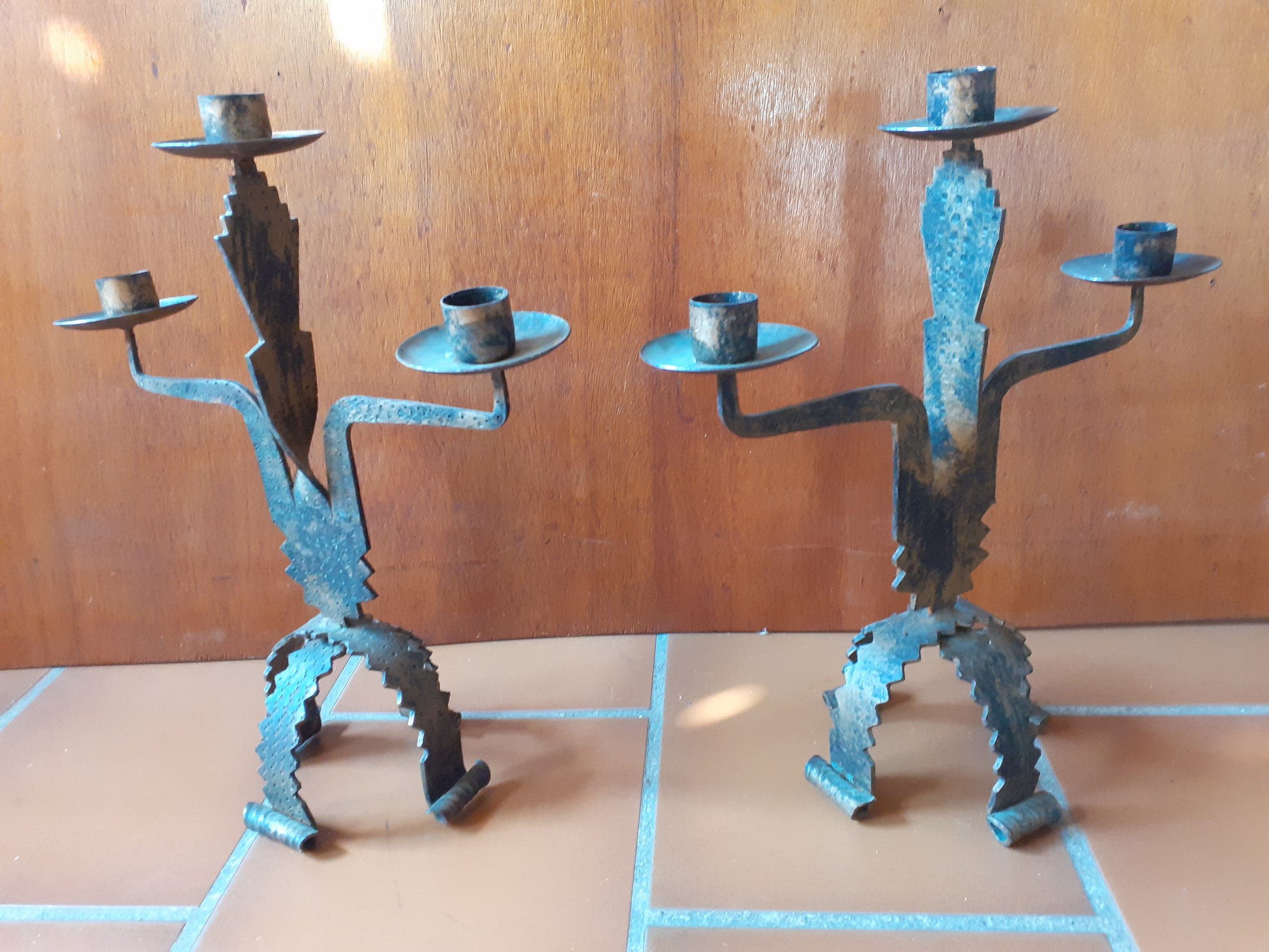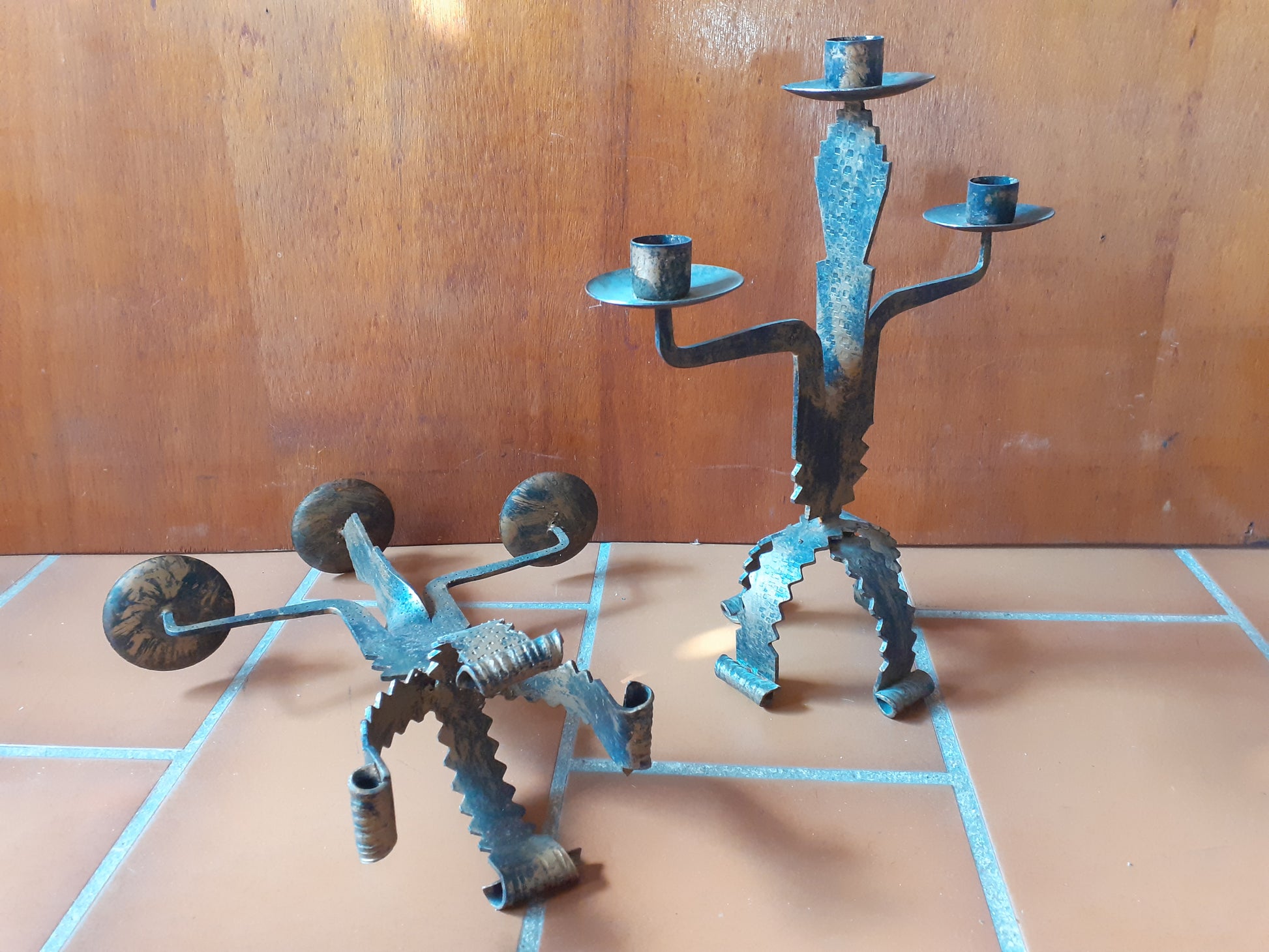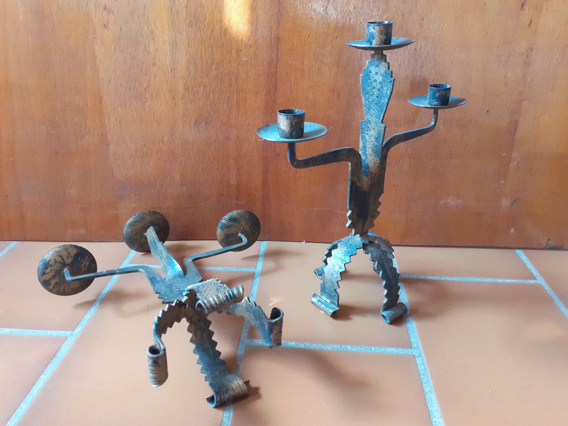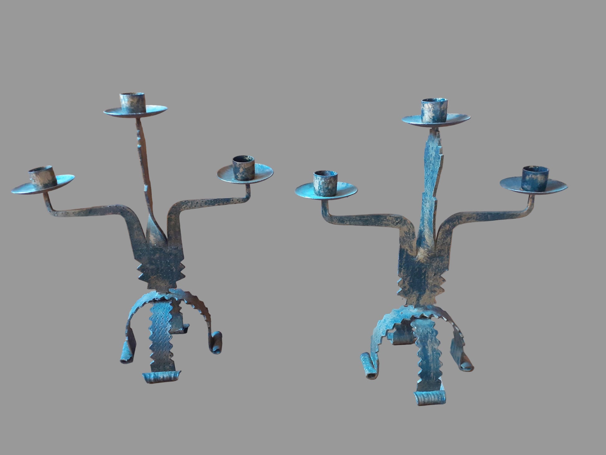 Paire de chandeliers brutaliste en acier des années 1970.