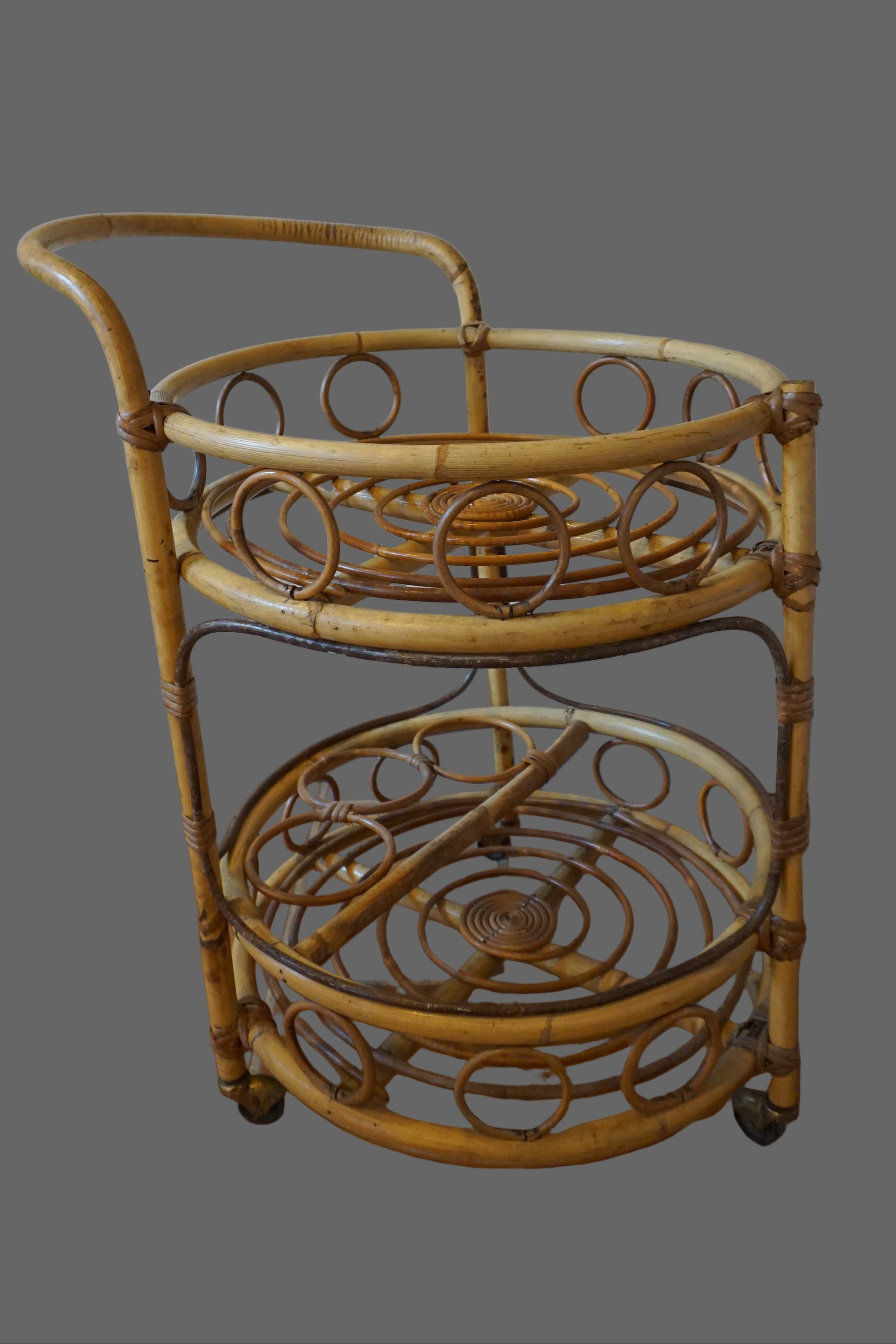 Desserte circulaire sur roulettes des années 70 à 2 niveaux.