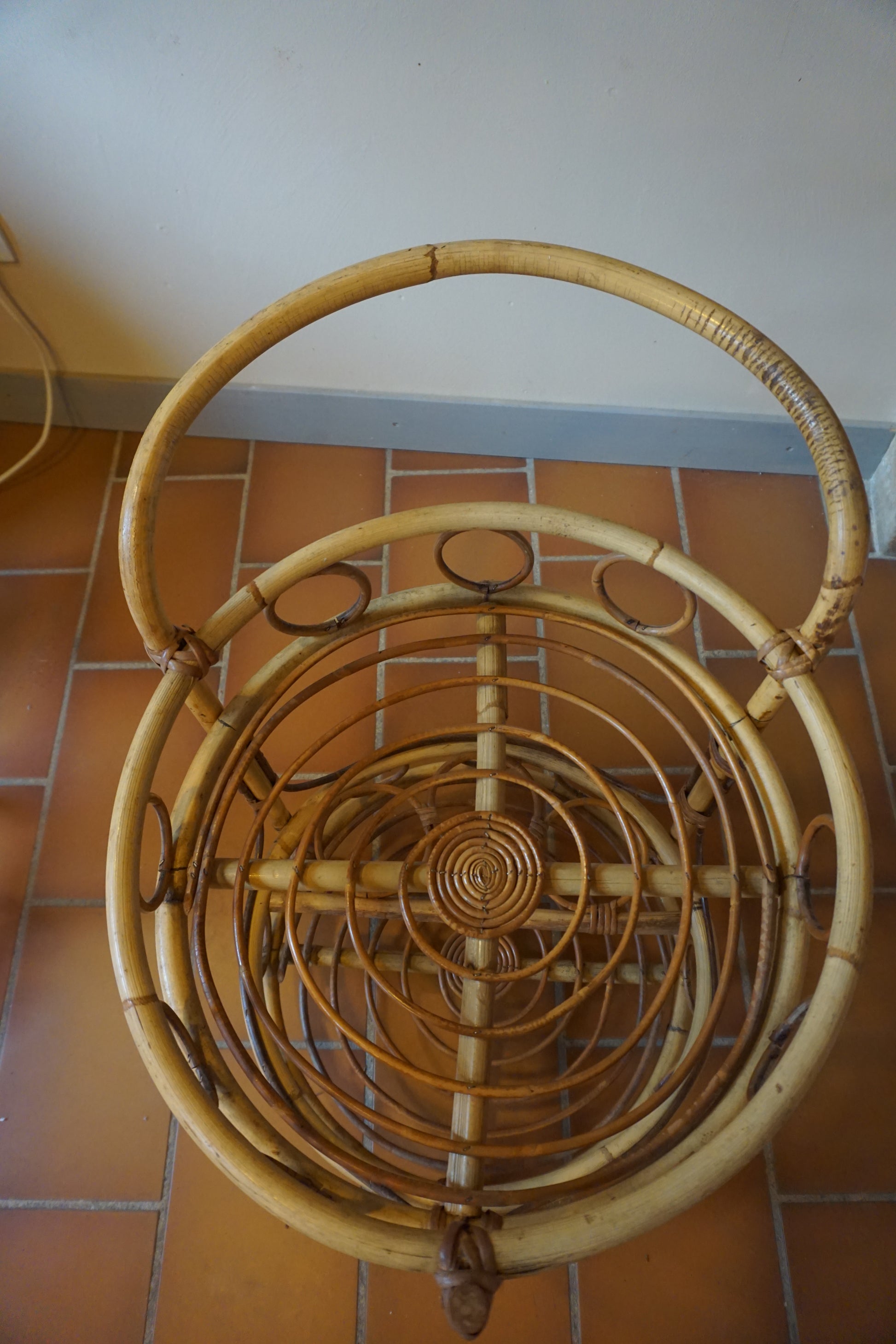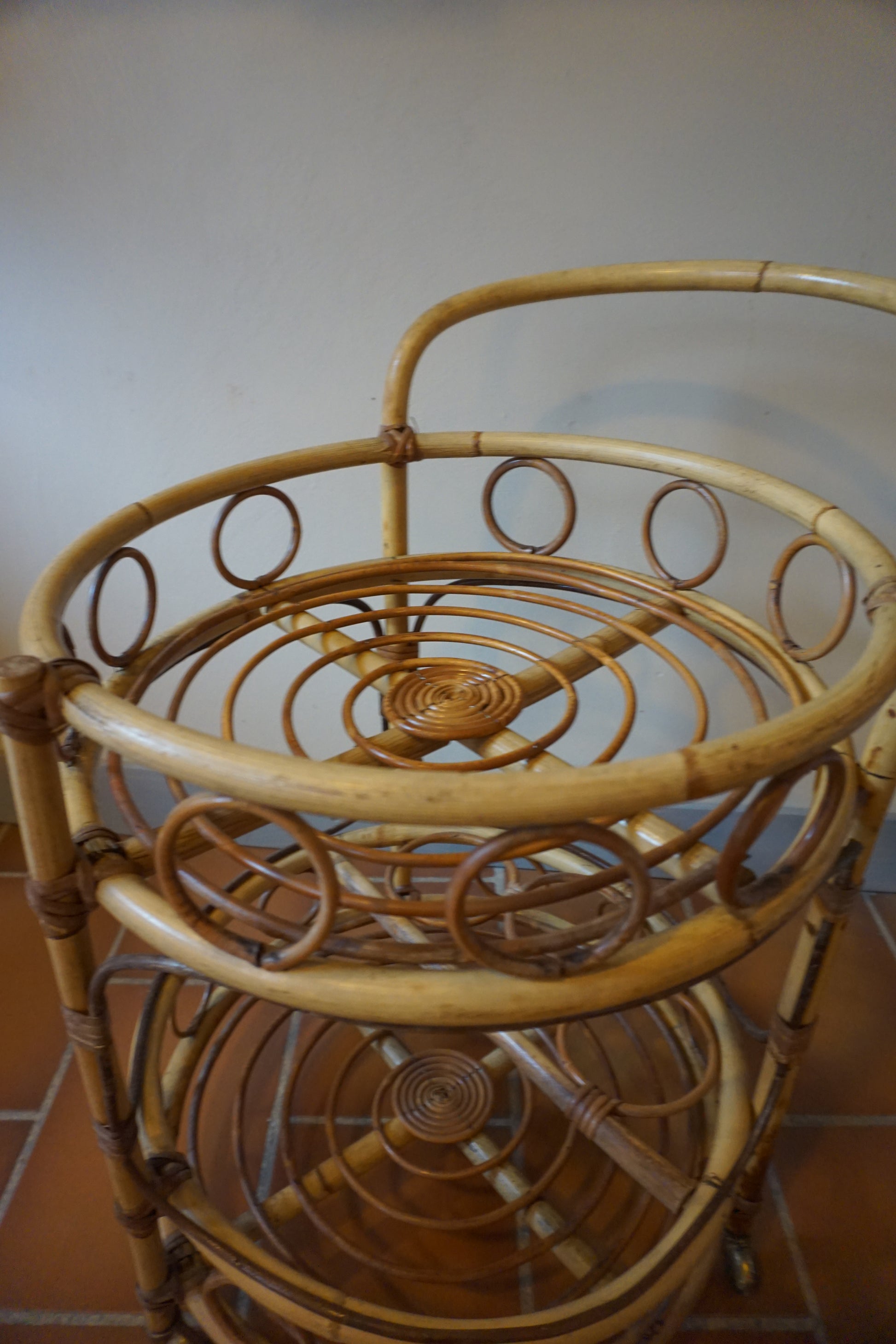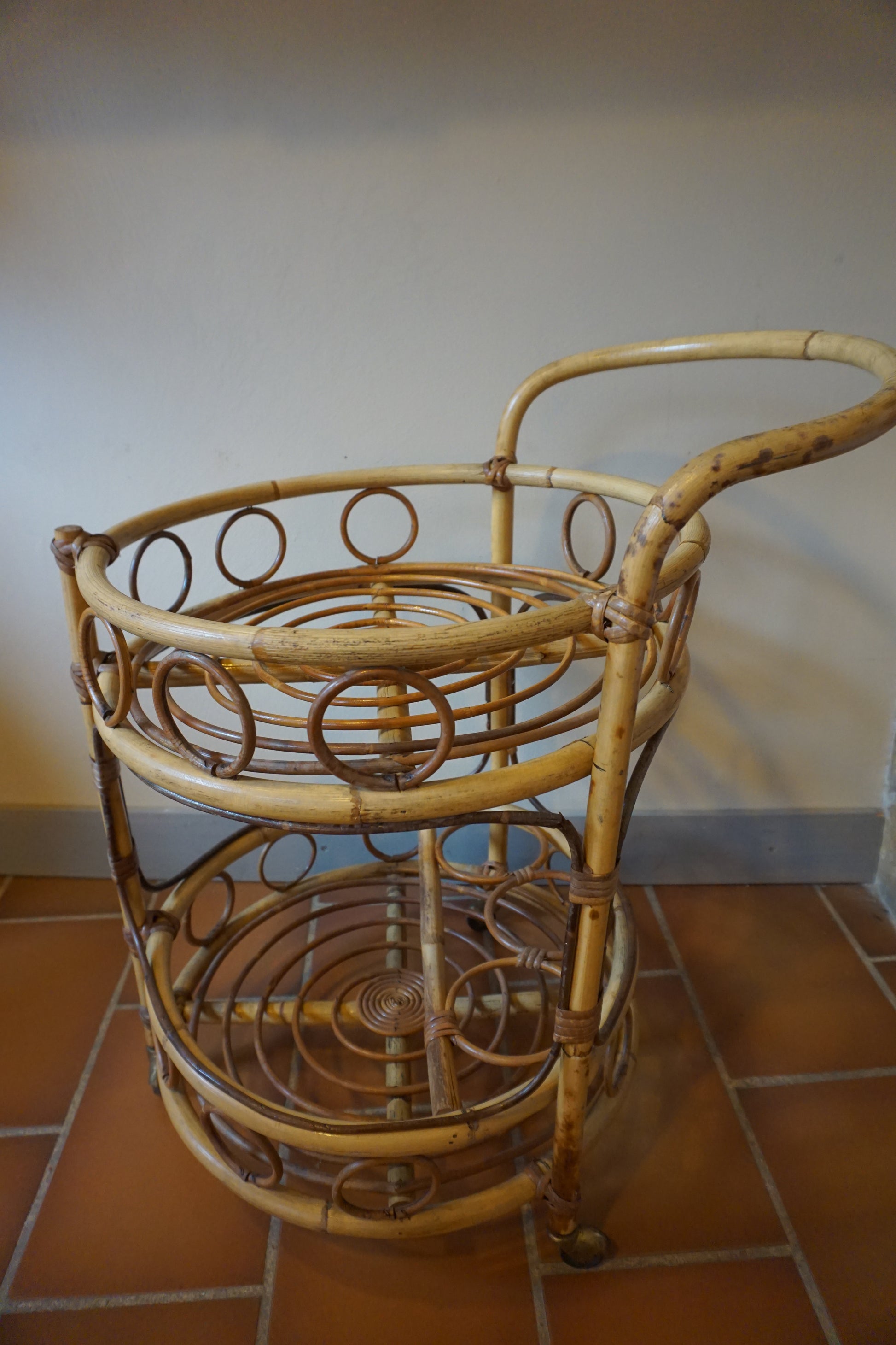 Desserte bar en rotin des années 70