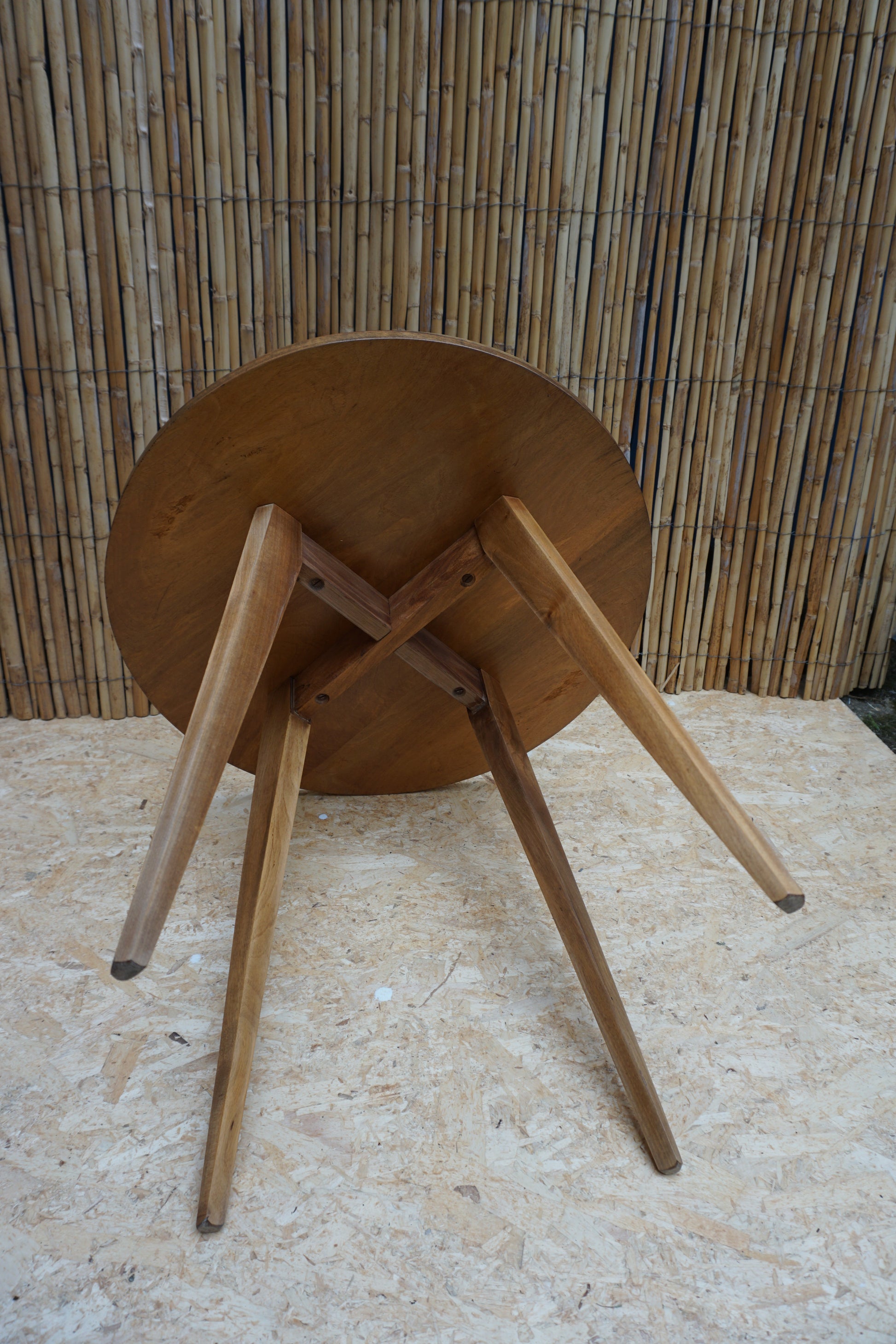 Guéridon ou table basse de style et d'époque art déco en noyer massif sur 4 pieds. Le plateau de la table est composé de 8 quartiers de placages en ronce de noyer disposés en rosace.