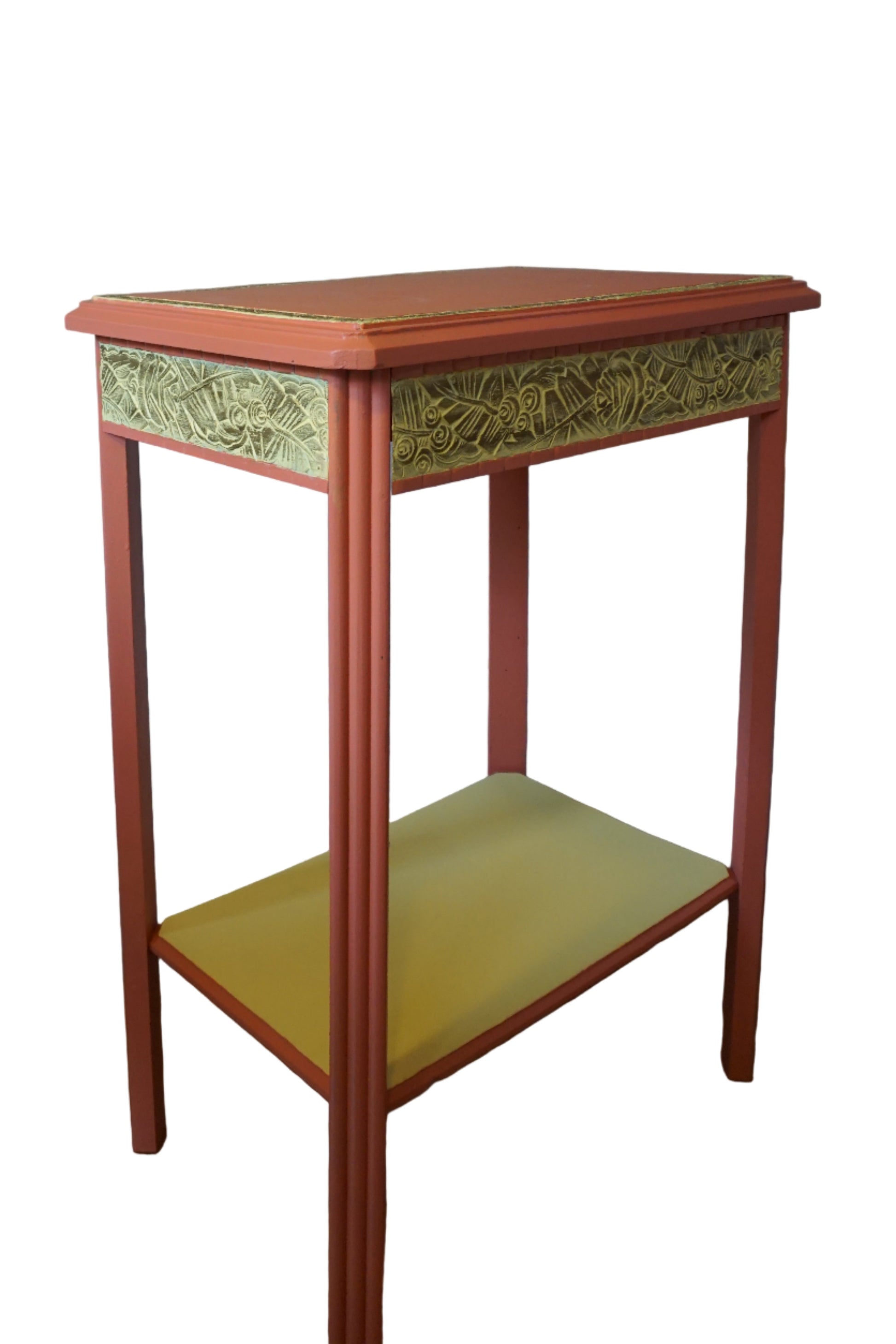 Guéridon des années 30 peint dans l'esprit art déco-tropical.