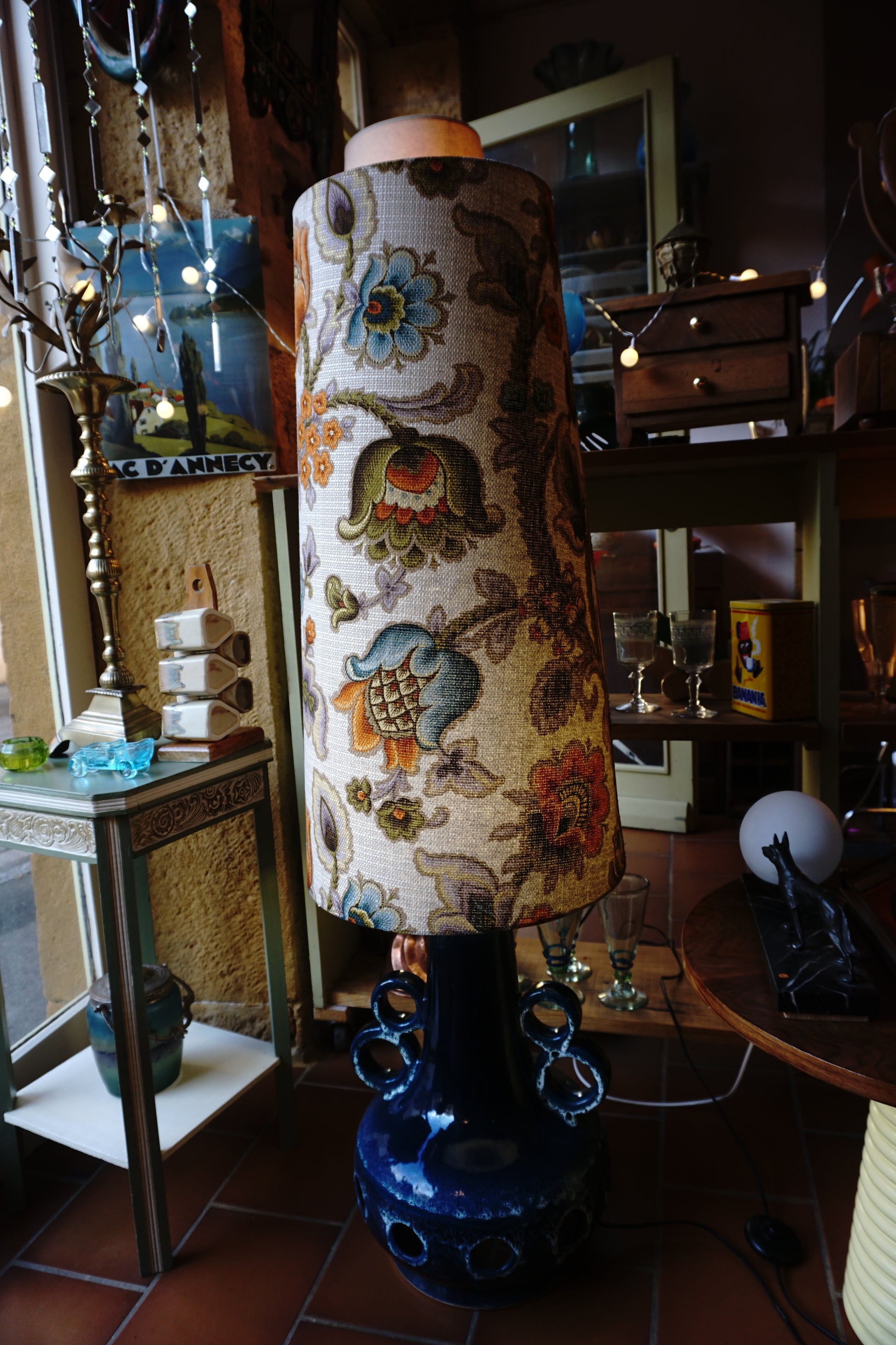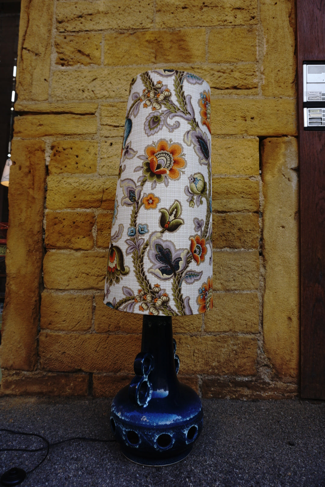 Grande lampe de 130 cm en céramique de type "fat lava" typique de la production ouest allemande des années 70 avec son abat-jour d'origine.