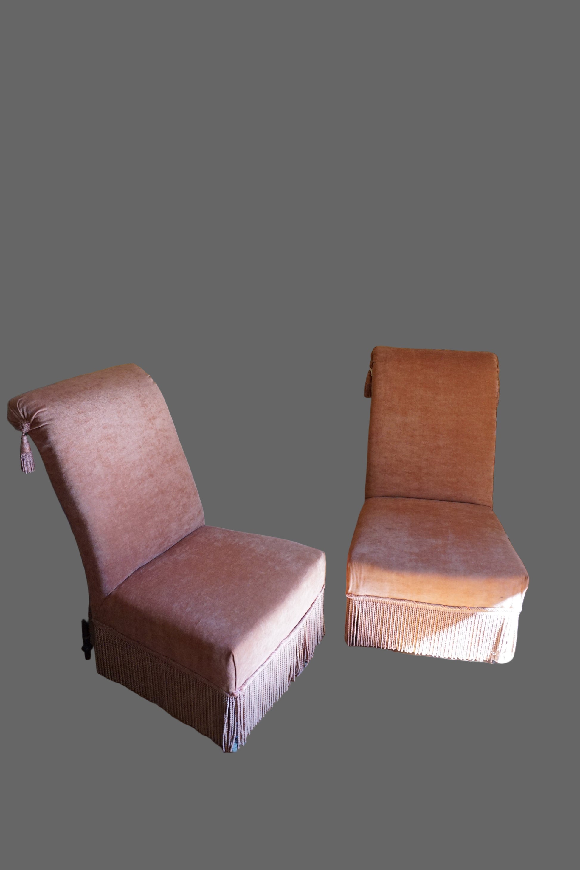 Paire de fauteuils dits chauffeuses de style Napoléon III de la fin du XIX° siècle.