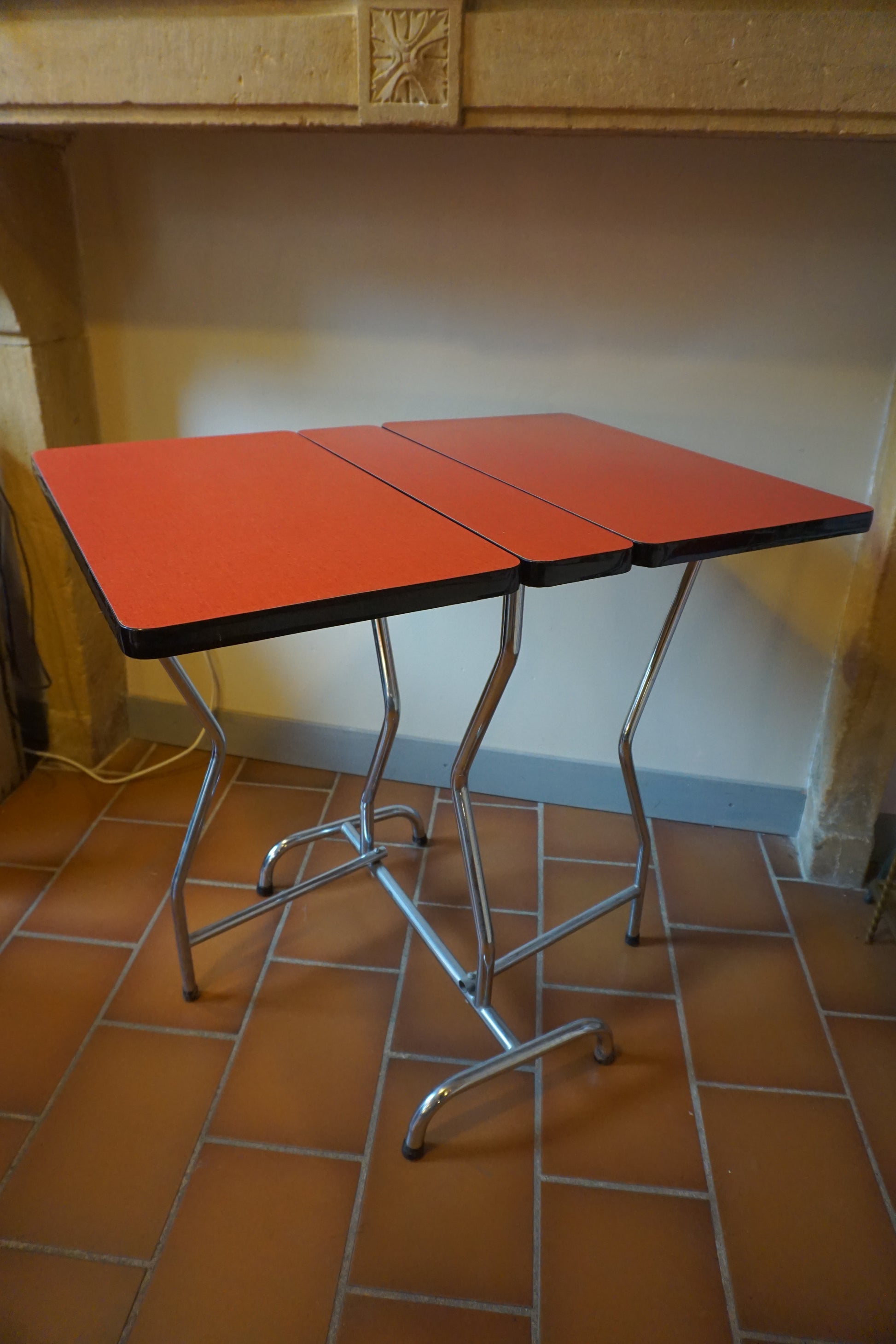 Table pliante en formica et tubes d'acier chromé de la fin des années 1960. Excellent état.
