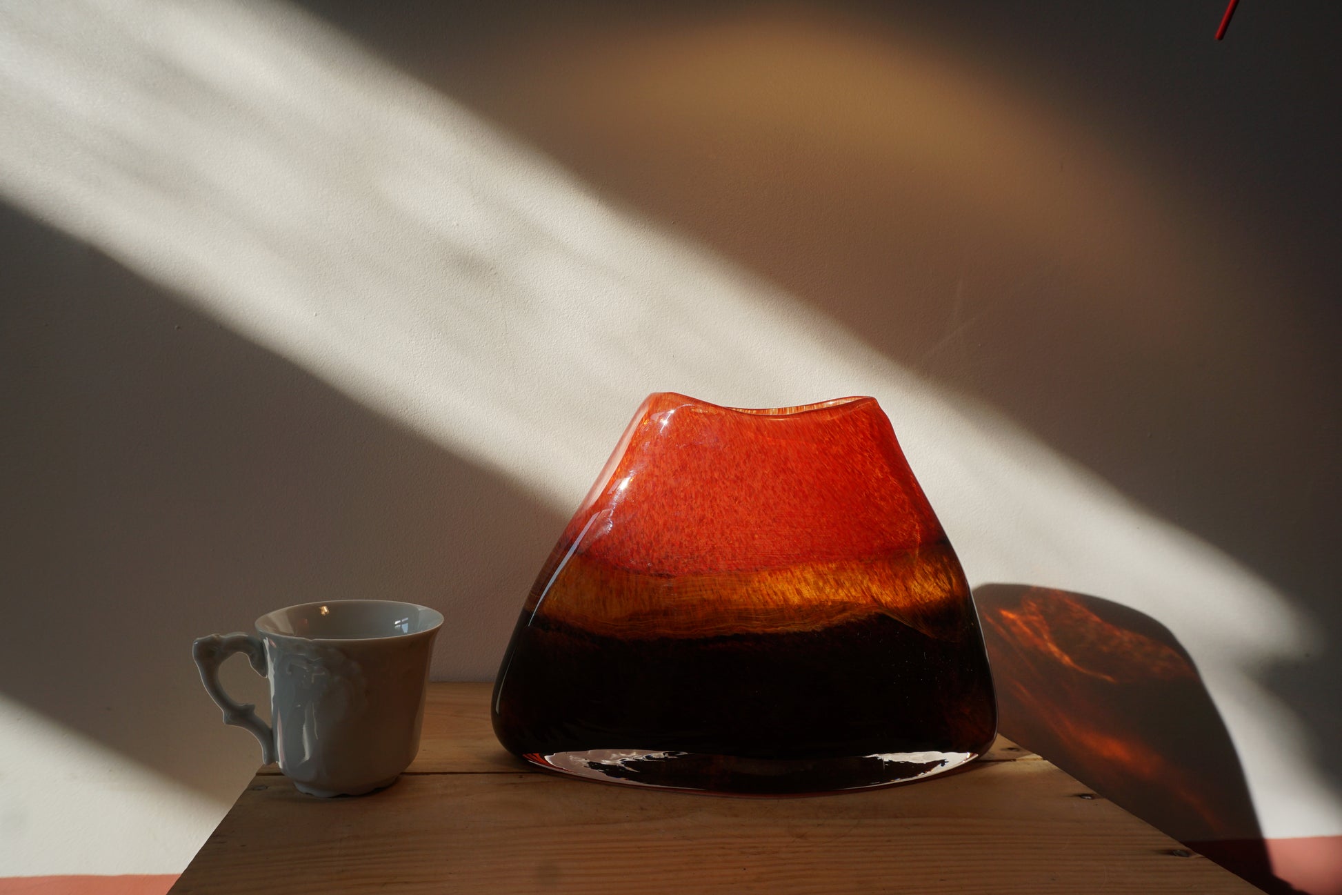 Sa forme et ses couleurs rappelant un volcan ainsi que l'épaisseur du verre font de ce vase hors du commun une œuvre de maître verrier et une sculpture à part entière.